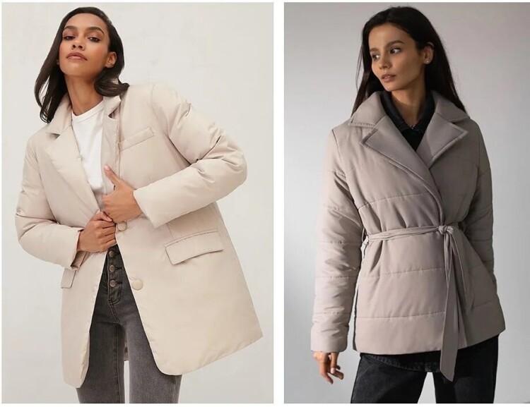 Відмітна риса такої куртки – відкладний комір, який характерний саме для піджаків і жакетів. Можуть бути гладкими, або ж з легкими, ледь помітними швами, як на фото праворуч. Носимо у вільному вигляді або виділяємо талію паском – обирайте на свій смак. Модель підійде на осінь, поки ще не дуже холодно.