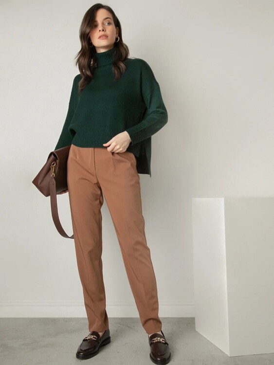 - У комплекті з класичними брюками залиште светр на випуск для створення строгого образу для офісу.