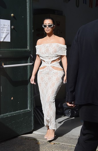 Вчора Кардаш’ян, яка славиться своїми відвертими нарядами, відвідала Ватикан. Навіть ця поїздка не стала для зірки приводом звернутися до більш консервативного одягу, і Кім з’явилася на публіці в сексуальный мереживній відвертій сукні з прорізами на стегнах.
