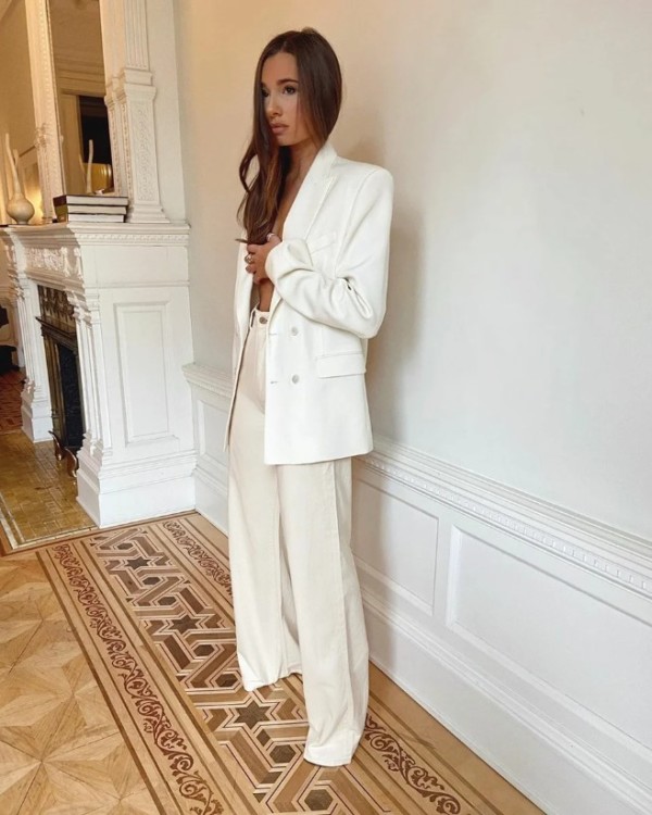 Одягнувши на себе брючний костюм з цієї колірної гами, жінки гарантовано привернуть до себе безліч захоплених поглядів.