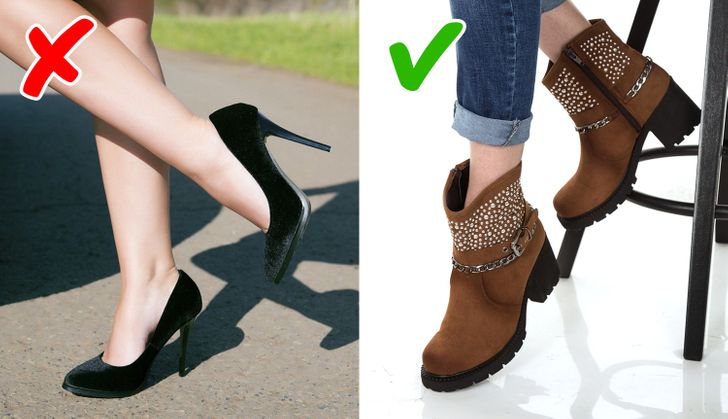 І все-таки взагалі відмовлятися від елегантних туфель не варто. Дослідження показали, що оптимальна висота каблука становить 2-4 см. Фахівці пропонують свою формулу для вибору шпильки. Потрібно розділити довжину стопи в см на 7.