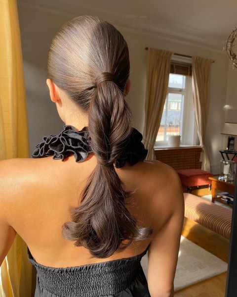Низький хвіст – ідеальна укладка на осінь. Виглядає стильно, та й легко поміститься під шапку.