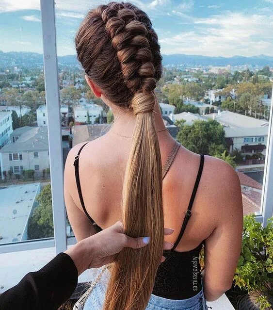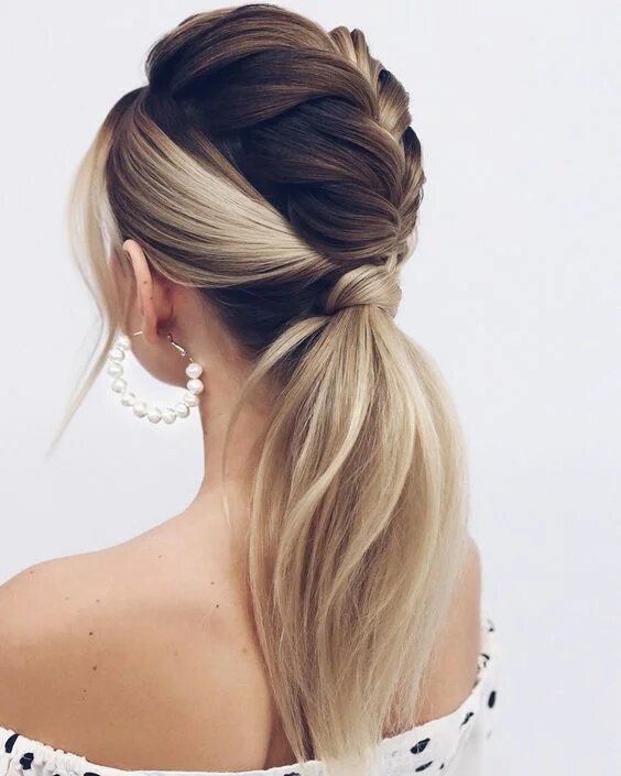 Ще один варіант коси, що переходить в низький хвіст. Ця зачіска виглядала б краще, якби французька коса була б не такою тугою, а трішки більш розслабленою.