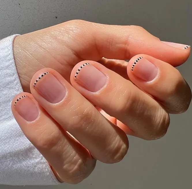 Якщо ви не наважуєтесь на провокаційні нігті, попросіть майстра нанести нейтральний відтінок лаку або гелю, близького до вашого натурального кольору нігтів і намалювати на них орнамент у горошок або кумедні кутики.