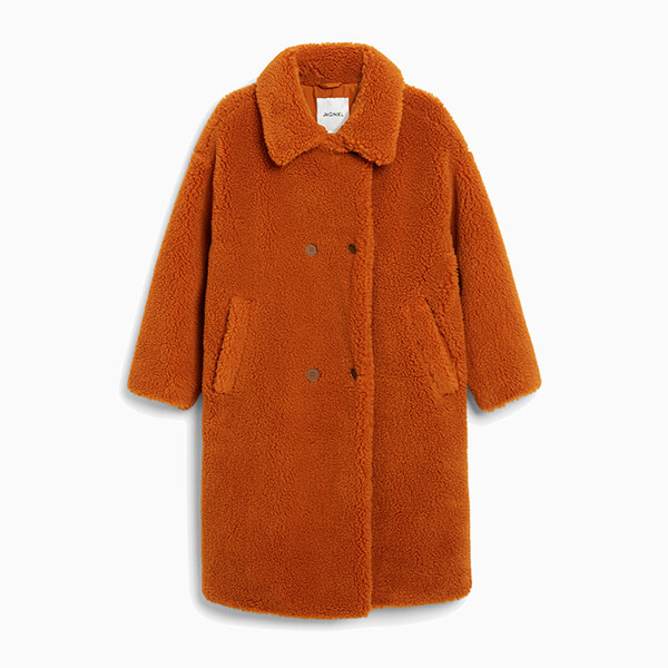 Варіацію на тему відомої шубки Teddy від MaxMara створює практично кожен демократичний бренд, так що якщо вам подобається ця модель, то ви знайдете її у всіх кольорах: від базових до яскравих. У цієї речі відтінок якраз антизимовий – бадьорий і апетитний темно-жовтогарячий.