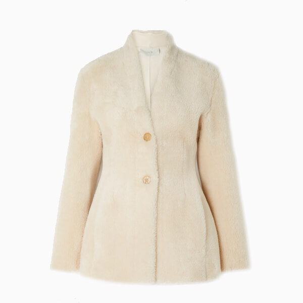 У пошуках оригінальних дизайнерських творінь зі штучного хутра ми натрапили на цей піджак кольору слонової кістки. Відсутність коміра та приталений крій роблять цю річ схожою на хутряний одяг аристократії ХІХ століття але у сучасному осмисленні. В якості верхнього одягу цей піджак не підходить для наших зим але, як жакет або другий теплий шар, зіграє на відмінно.