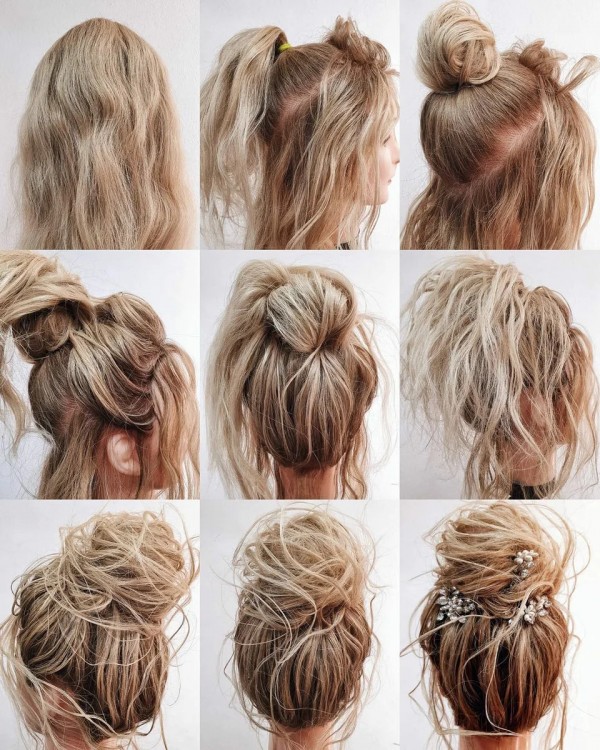 Для тонкого і неслухняного волосся такий пучок стане кращим варіантом. Його легко зробити, адже головна ідея зачіски – трішки неохайний і хаотичний вигляд.