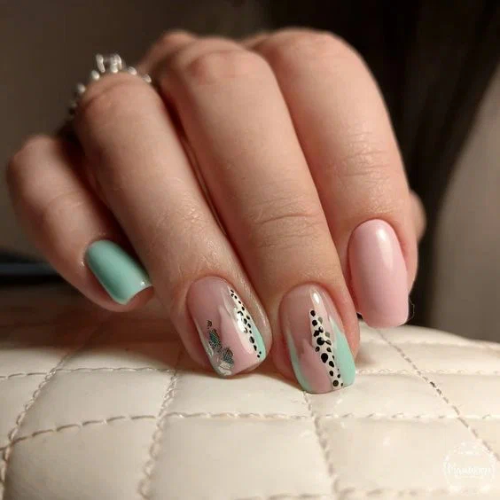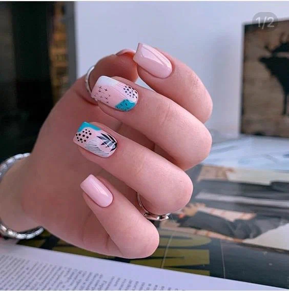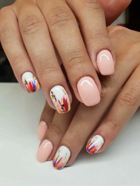 Літній варіант абстрактного манікюру найкраще урізноманітнити рожевими та червоними відблисками.