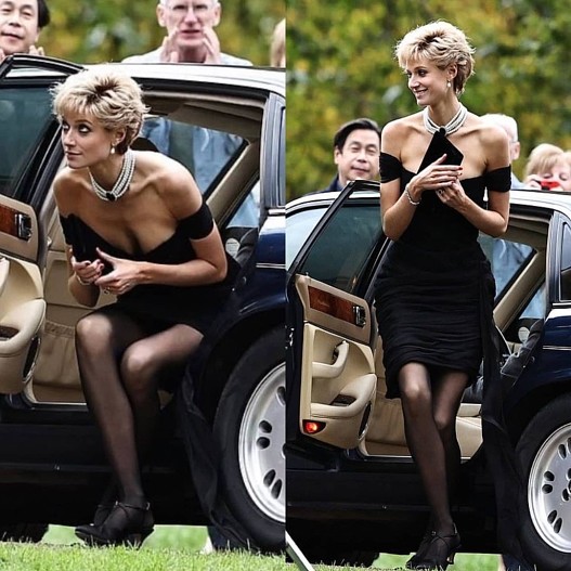 Актриса Елізабет Дебікі, яка виконує в серіалі роль леді Ді, приміряла репліку одного з найсміливіших нарядів принцеси Уельської. Йдеться про культову маленьку чорну сукню з глибоким декольте, в якій монарша особа з’явилася на публіці 1994-го на заході зі збору коштів журналу «Vanity Fair».