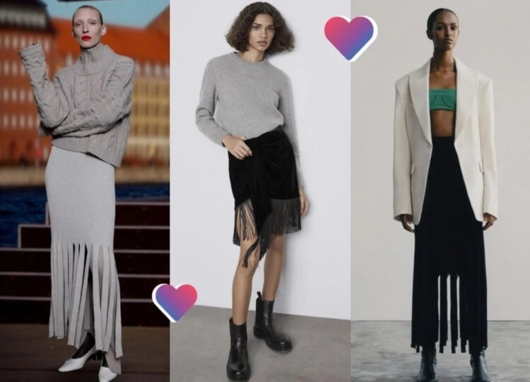 Речі з обробкою у вигляді бахроми все більше захоплюють тренди. Зокрема, вже зараз в колекціях можна зустріти і спідниці з таким декором. Цікавий варіант, якщо вам потрібна акцентна річ з характером. Перевага такої спідниці в тому, що вона чудово витягує силует, тому що створює безліч додаткових вертикальних ліній.