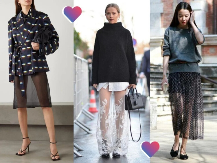 Прозорі тканини – один з ключових трендів 2021 року. Не дивно, що зустрічатися вони будуть в різних “сферах” гардеробу – в тому числі і в спідницях. Звичайно, масовими такі моделі не стануть, але навесні-влітку можна спробувати цікаво обіграти таку спідницю шортами-велосипедками, легінсами або навіть джинсами.