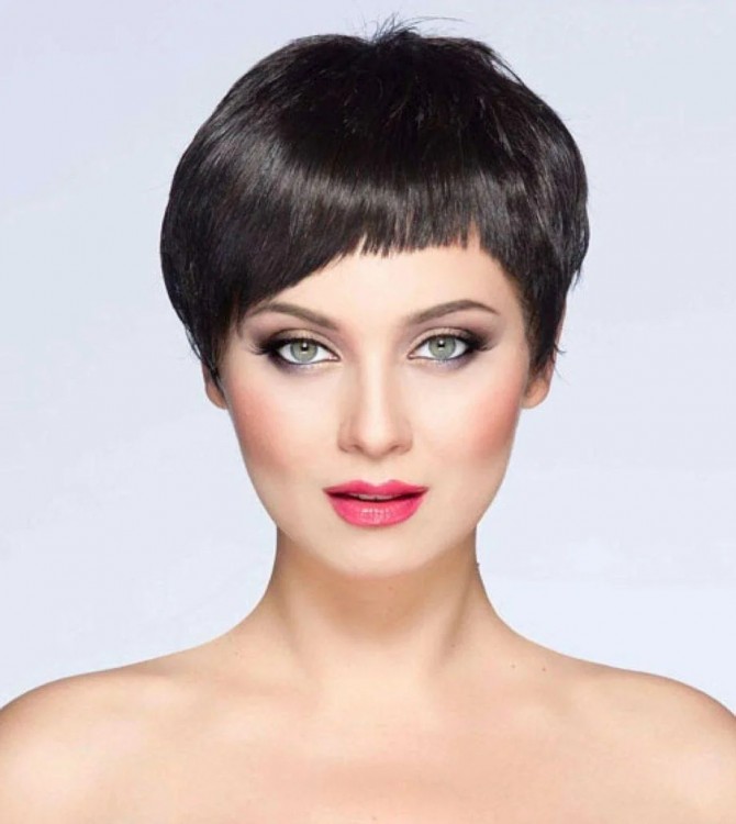 Стрижка з коротким чубчиком. Багато модних дизайнерів представили нам на показах моделей з коротким чубчиком. Така стрижка підійде далеко не всім. Гармонійно виглядатиме короткий чубчик у дівчат з овальним обличчям.