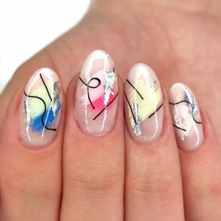У вигляді креативного манікюру можна вибрати техніку у виконанні графіки. Яскраві і насичені відтінки дозволять виконати ефектний соковитий манікюр. Принти, абстракція, аерографія – все це неповторні ідеї, щоб розбавити сірі будні. Якщо немає бажання виконувати занадто яскраві і насичені варіанти, можна вибрати мінімалізм. Пара непомітних елементів зроблять манікюр стриманим і креативним.