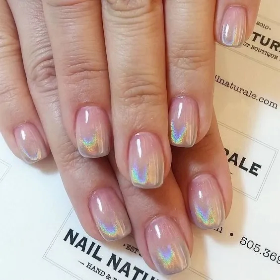 Голографічні лаки – швидкий та простий спосіб зробити оригінальний дизайн нігтів. Вибирайте самі: можна зробити весь ніготь голографічним, або тільки його частину.