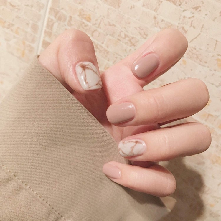 Мармурові нігті – хіт у нейл-арті не тільки в Україні, а й в Азії. Намалюйте на двох нігтях мармурові розводи, а решту зробіть однотонними. Уявляємо, як красиво виглядає цей дизайн із кашеміровим бежевим светром!