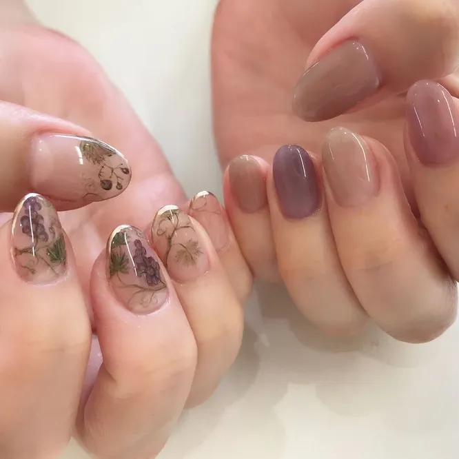 Не можете визначитися, що вам потрібно — малюнок чи однотонний манікюр? Навіщо вибирати, коли можна зробити одну руку з малюнком, що сподобався (зараз особливо актуальні рослини), а другу — мінімалістично монотонною.