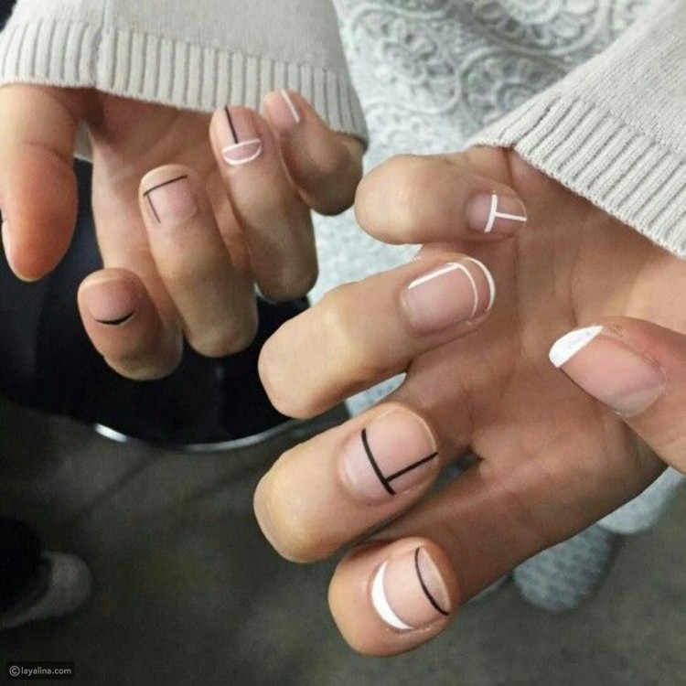 Любите мінімалізм? Тоді цей манікюр стане вашим улюбленим. Просто озбройтеся білим та чорним лаками для нігтів, проведіть кілька рівних ліній та закріпіть все матовим покриттям.