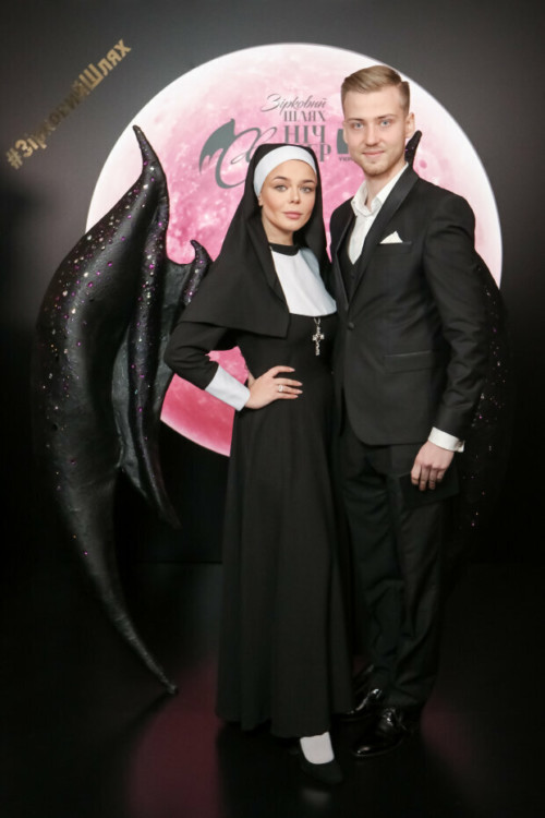 Аліна Гросу з чоловіком також були в числі запрошених. Співачка не мучилася у виборі образу, а просто одягнулася черницею перевтілившись в героїню своїх кліпів.