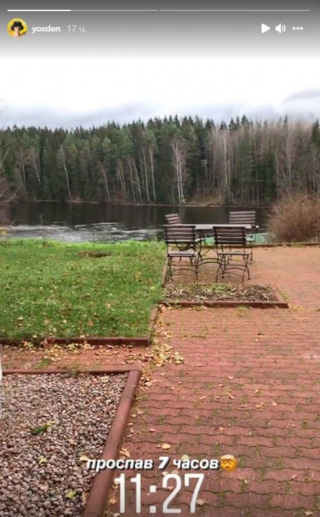 Майже ідентичні фото в Instagram-stories опублікував її бойфренд. Хлопець показав ту ж саму річку й поділився першими враженнями від відпочинку. За словами коханого Alyona Alyona, йому все дуже подобається. Однак, Денис поскаржився на прохолодну погоду. Він хотів скупатись в річці, проте, через низьку температуру повітря відразу передумав.