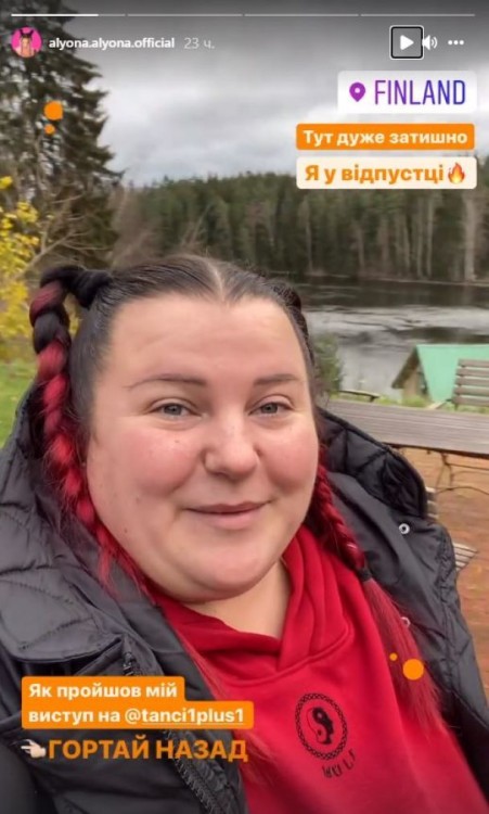 Реперка позує на тлі красивої річки. А ще знаменитість повідомила, що зупинилась у маленькому містечку під Хельсінками. За словами Alyona Alyona, там дуже затишно та красиво. Артистка планує відпочити декілька днів у Фінляндії й задоволеною повернутись додому.