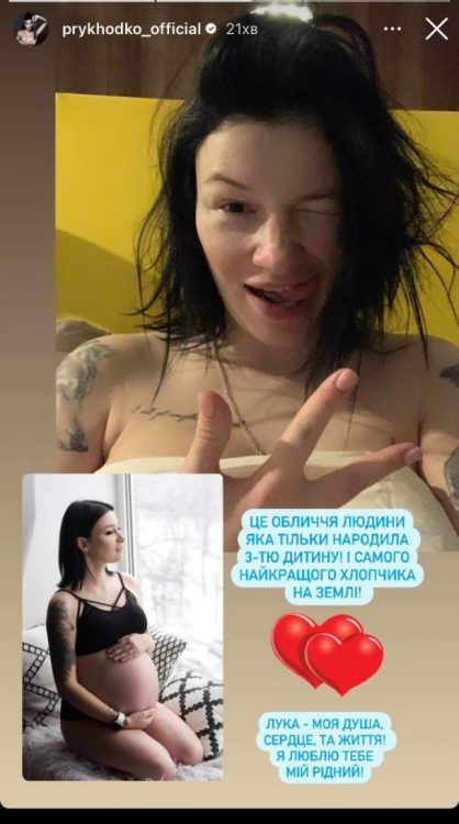 В соцмережі Instagram співачка запостила світлину, на якій позує з чималим животиком. “Це обличчя людини, яка тільки-но народила третю дитину і найкращого хлопчика на землі! Лука – моя душа, серце та життя. Я люблю тебе, мій рідний”, – прокоментувала публікацію зірка українського шоу-бізнесу.