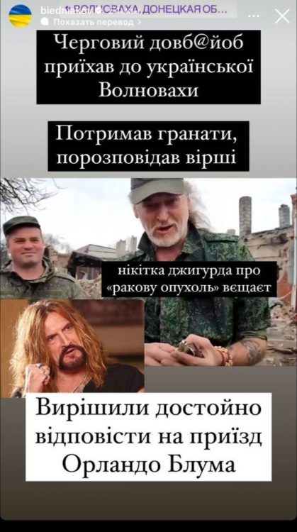 В Instagram-stories він емоційно висміяв російського пропагандиста, назвавши його недоумком. Також телеведучий вжив ненормативну лексику, коли коментував цю ситуацію. “Черговий дов**йоб приїхав до української Волновахи. Потримав гранати, порозповідав вірші. Нікіта Джигурда про “ранкову пухлину” вєщаєт”, – заявив Андрій Бєдняков.