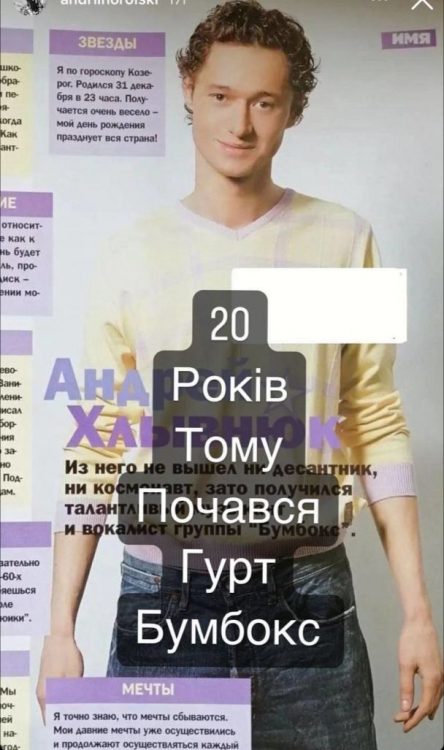 На архівному фото він постав з кучерявим волоссям. Чоловік позував в джинсах та світлій кофті. А ще Андрій Хливнюк мило усміхався. Виконавець заявив, що саме 20 років тому розпочав свій творчий шлях. Лідер гурту “Бумбокс” дуже пишається, що не зупинився та активно розвивав кар’єру.
