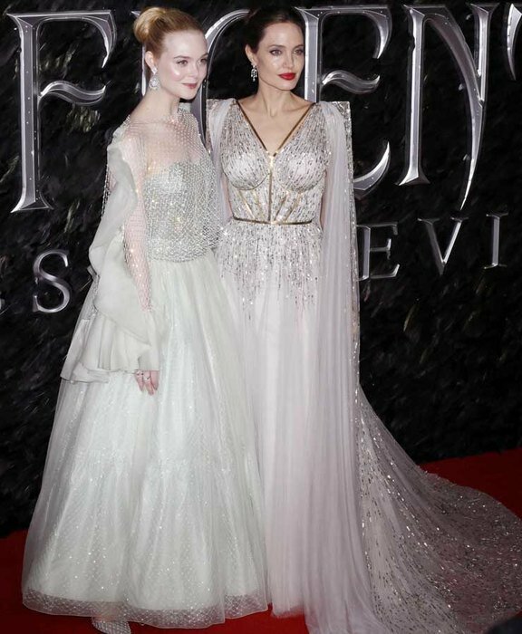 Свій новий наряд 44-річна актриса продемонструвала в Лондоні під час прем’єри фільму «Малефісент: Володарка тьми». В якості супроводу на червоній килимовій доріжці разом з Анджеліною Джолі вийшли і її діти, а також 21-річна актриса Ель Фаннінг.
