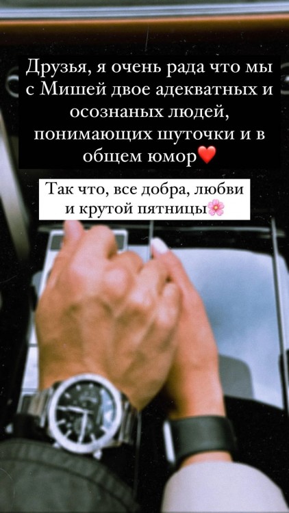 В Instagram-stories переможниця “Холостяка” заявила, що зовсім не ображається на Михайла, адже його слова були жартівливими.