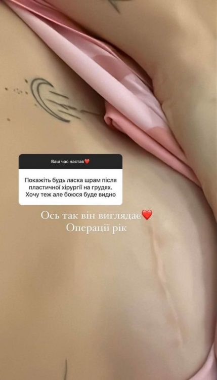 В Instagram-stories блогерка поділилась світлиною. Вона показала чималий шрам під грудьми, що залишився після хірургічного втручання. За словами Анни Трінчер, вона майже не звертає на нього увагу.