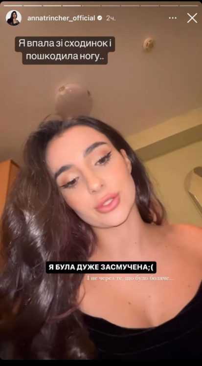 Популярна українська блогерка, співачка та акторка Анна Трінчер поділилась дуже неприємною новиною зі своїми підписниками. Дівчина повідомила, що отримала серйозну травму. Про це співачка розповіла в Instagram-stories.