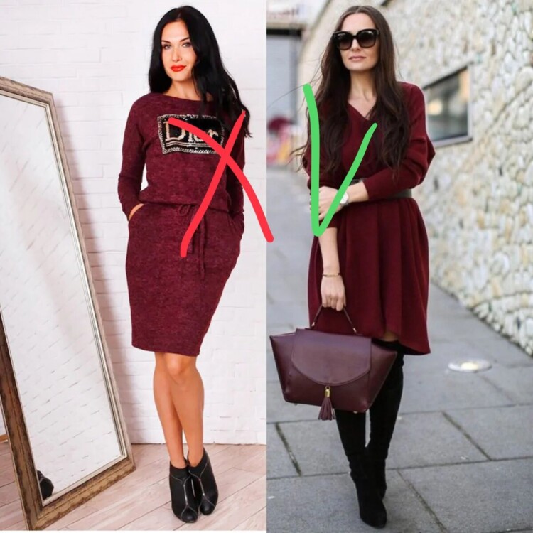 З вибором сукні-світшота варто бути акуратними. Віддавайте перевагу класичним моделям хорошої довжини без декору.