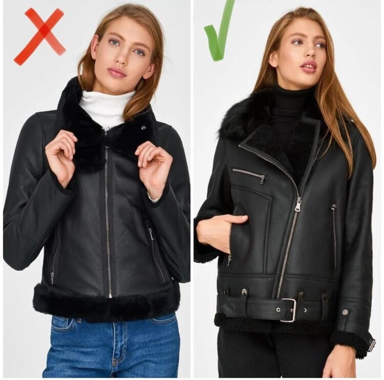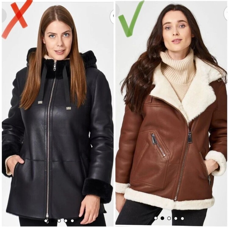 При виборі дублянки опирайтеся в першу чергу на крій виробу. Уникаємо зайвої приталеності, верхній одяг не повинен сидіти в обтяжку. Крім того, контрастна хутряна обробка сильно псує виріб. А ось коротке хутро в тон основного матеріалу допустити.