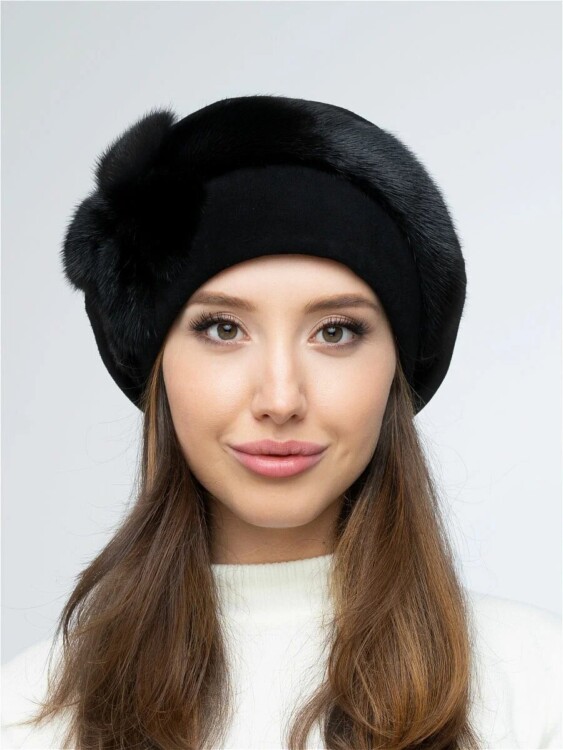 Берет з хутра зі стразами