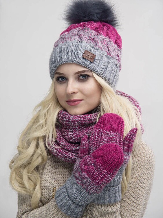 Набір в одному колірному поєднанні спільно з плетеною фактурою виробів – суттєво перевантажують образ. Помпон і бірочка також будуть зайвими у цьому сезоні.