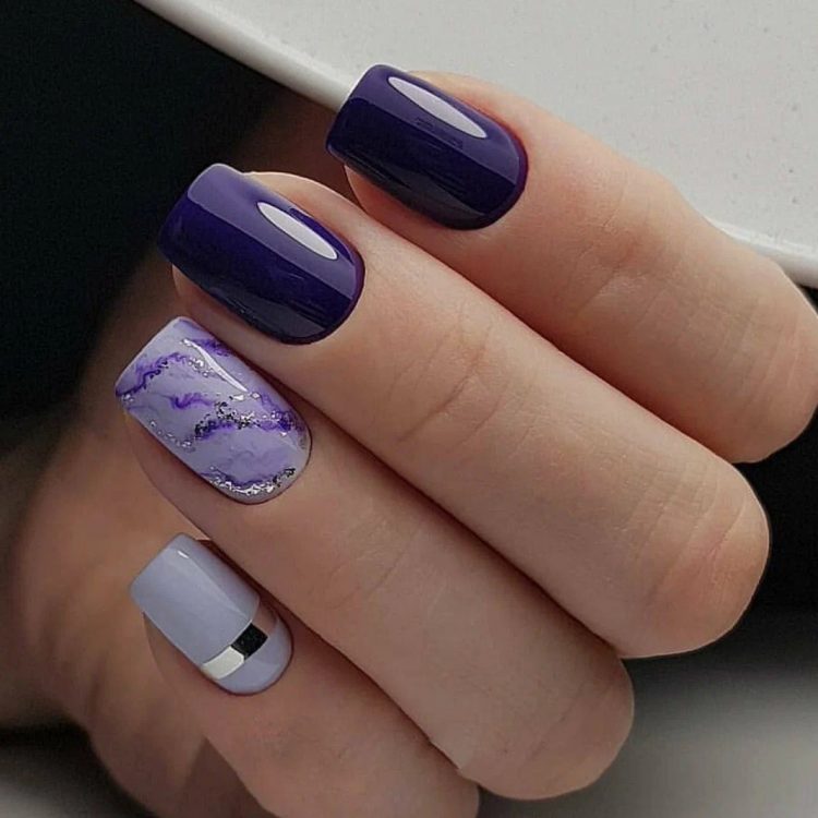 Додайте в образ трохи грайливих ноток – спробуйте виконати дизайн, в якому поєднуються різні відтінки однієї палітри. Манікюр вийде ефектним але, при цьому, досить стриманим і не химерним.