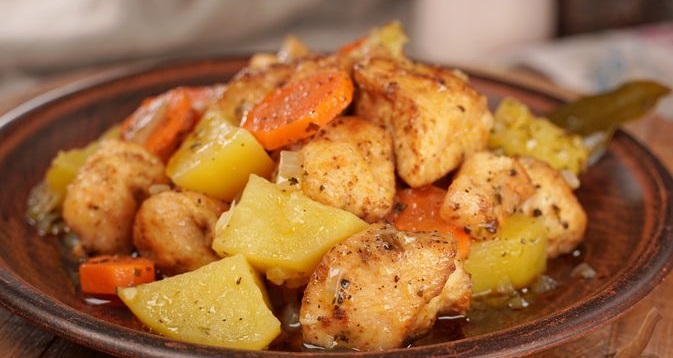 Обов’язково приготуйте таку гарячу страву до святкового столу. Тушкована картопля з куркою виходить ароматною, ситною та дуже смачною. Вона проста у приготуванні та апетитна.