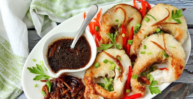 Страва дуже проста у приготуванні. Смажена риба з винно-соєвим соусом, цибулею та імбиром виходить апетитною та смачною. Така риба точно сподобається всім рідним.