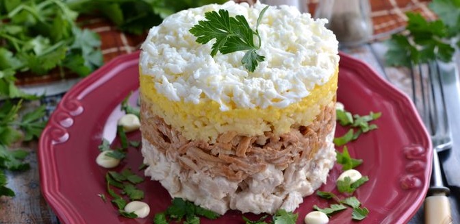 Якщо хочете потішити гостей смачним салатом, то приготуйте його за цим рецептом. На вигляд страва дуже апетитна та ситна. Салат з куркою, яблуками, сиром та яйцями нереально ніжний та швидкий у приготуванні.