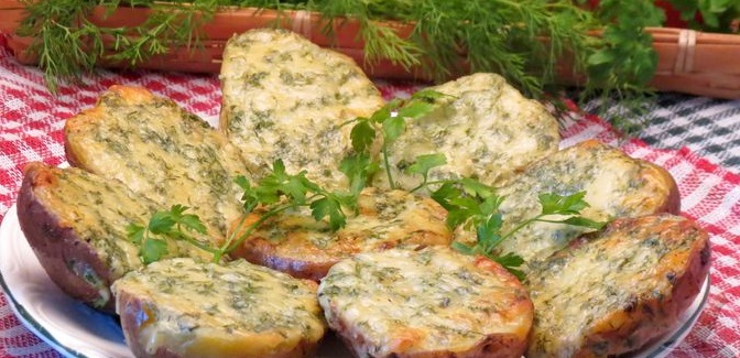 Така гаряча страва точно Вам сподобається. Вона готується з мінімум інгредієнтів та виходить дуже ситною. Картопля під часниковим соусом з сиром та зеленню чудово смакує в гарячому вигляді.