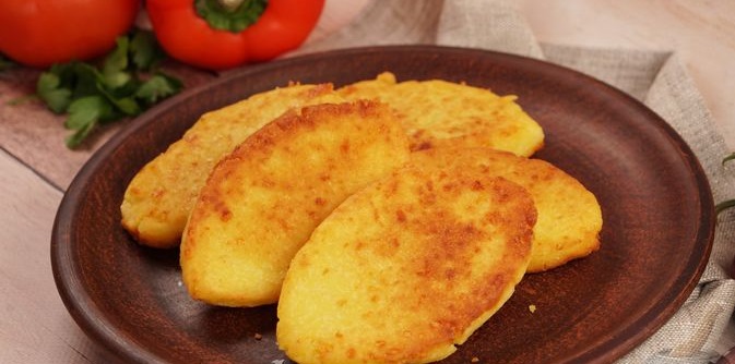 З тіста формуємо ковбаску. Нарізаємо її на однакові шматочки. Сковорідку змащуємо олією та ставимо на вогонь. Викладаємо пиріжки та смажимо з двох боків до рум’яної скоринки. До столу їх подаємо в гарячому вигляді. Смачного!