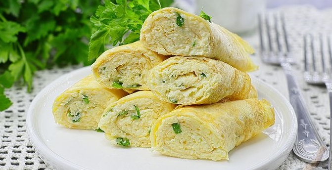 На сніданок такі рулетики підходять просто ідеально. У їхньому приготуванні немає нічого складного. Страва складається з бюджетних інгредієнтів. Яєчні рулетики з сиром та часником точно Вам сподобаються.