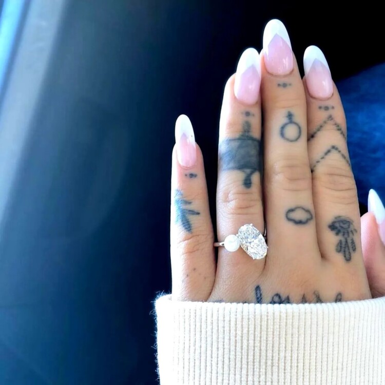 Зірка похизувалася розкішним кільцем на безіменному пальці. Прикраса виготовлена з білого золота та декорована перлиною і великим діамантом. «Назавжди і довше», – красномовно вказала молода артистка.