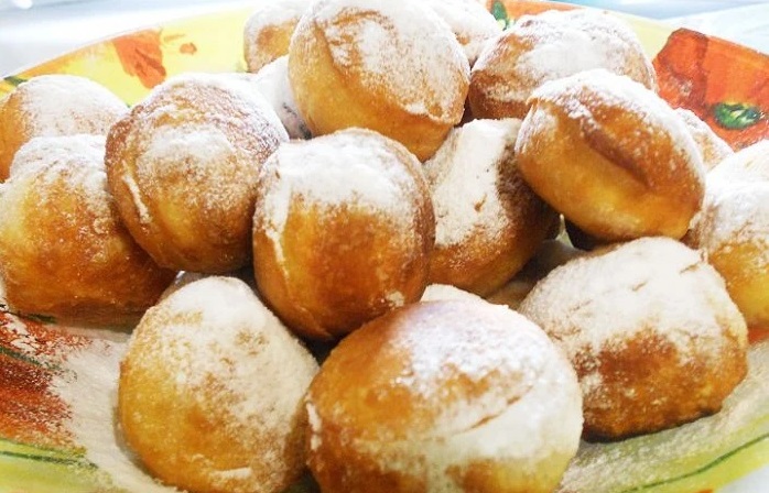 Додаємо сіль, розтоплене вершкове масло та борошно. Замішуємо еластичне тісто. Залишаємо його на 2 години. Потім тісто ділимо на кульки однакового розміру. Смажимо їх в розігрітій олії, а потім обвалюємо в цукровій пудрі. Смачного!
