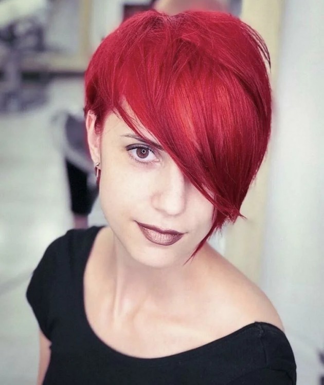 Додати екстравагантності в образ допоможе кольорове забарвлення, за допомогою якого можна як підкреслити асиметрію, так і зробити її.