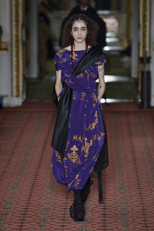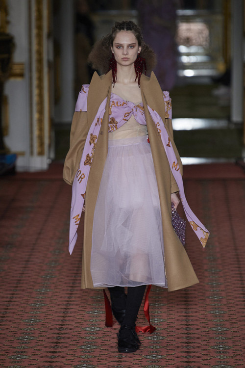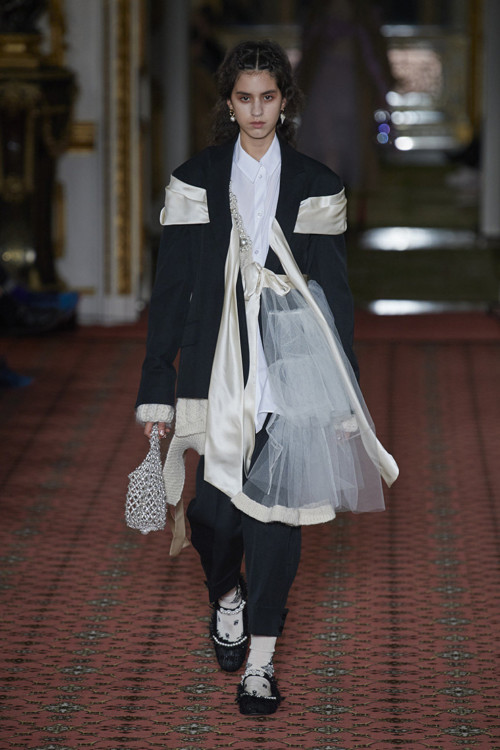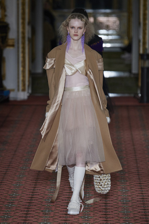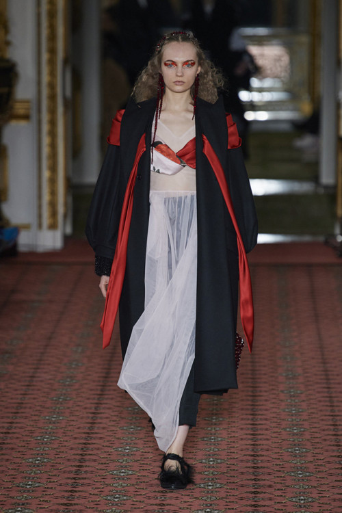 У новій колекції панянки в мереживах і вуалях крокують по подіуму з розбійницями в оверсайз-костюмах. Сукні, втім, теж не лягають точно по фігурі: дизайнер робить ставку на обсяги і багатошаровість. Від жакетів і пальт розповзаються стрічки, схожі часом на обробку парадної військової форми, а часом – на зав’язки на старовинній спідній білизні. Елементи спіднього взагалі використовуються активно: крім сорочок та мережив з’являються заодно і нижні спідниці, і панталони.