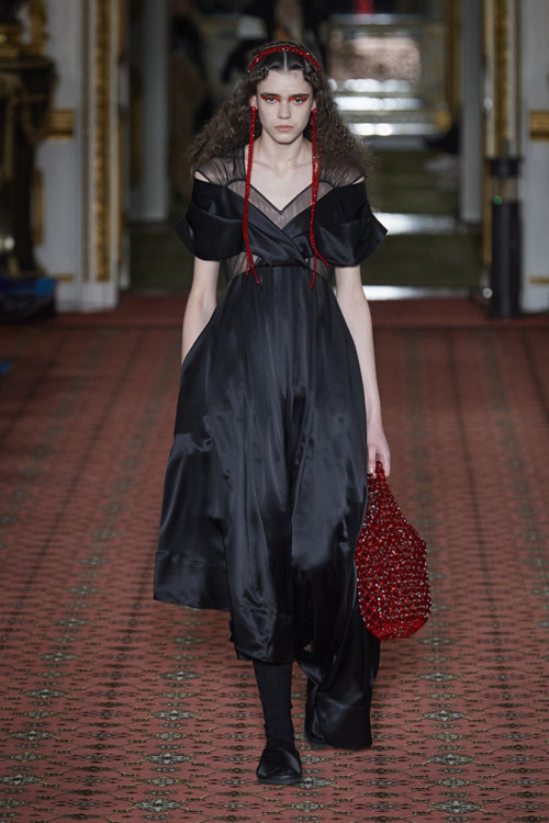 Казки зовсім не так невинні та світлі, як може здатися тому, хто встиг про них забути. Похмурих речей вистачає і в класичних історіях – а вже в колекціях Simone Rocha хепі-енди і зовсім не в пошані. Нехай повітряна, підкреслено дівоча естетика вас не обманює: романтика, до якої тяжіє британський дизайнер, виключно похмура. І ні розсипи перлів, ні шовкові банти, ні вишивки з червоними сердечками цього не приховують.