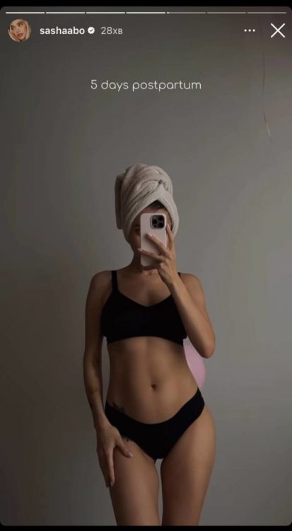 В Instagram-stories вона поділилась декількома світлинами, продемонструвавши фігуру у спідній білизні. Тіло Саші Бо дуже швидко відновлюється після пологів. Також блогерка додала, що після третьої вагітності в неї немає жодної розтяжки на животі. Саша Бо безмежно цьому рада.