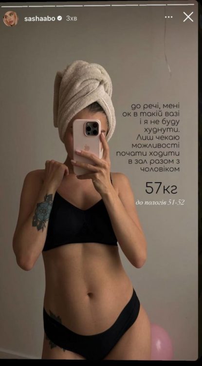“До речі, мені ок у такій вазі, я не буду худнути. Лише чекаю на можливість ходити до спортзалу разом із чоловіком. Моя вага 57 кіло, до пологів – 51-52 кіло”, – заявила новоспечена мама. Фоловери відразу засипали блогерку компліментами. За їхніми словами, після пологів Саша Бо має розкішний вигляд.