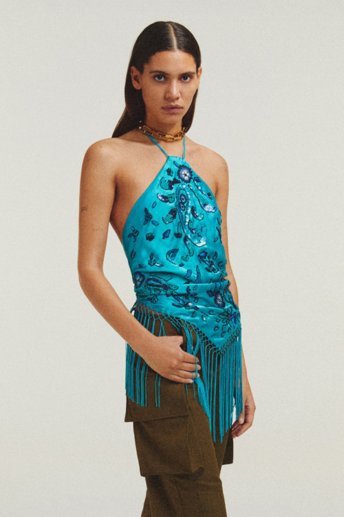Блузки з декольте, пір’я і топ-бандана в новій колекції Attico